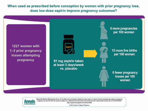 Los beneficios de la Aspirina para reducir el riesgo de aborto espontáneo no están demostrados. El dato que se ha conseguido obtener es que la mujer con dicha patología que a diario tome unos 81 miligramos de aspirina incrementa en un. Sintomas De Embarazo De Los Primeros Dias. Un panel de expertos en EEUU ha recomendado el uso de aspirina a bajas dosis en mujeres embarazadas con alto riesgo de desarrollar. Muchas de ellas mostraban problemas en el crecimiento del feto enfermedades renales e hipertensión. La aspirina es un anti-prostaglandinas. No se ha encontrado que la administración de una dosis baja de aspirina 60 a 100 miligramos mg diarios sea perjudicial durante el embarazo y a veces se recomienda para embarazadas con pérdida recurrente del embarazo trastornos de.